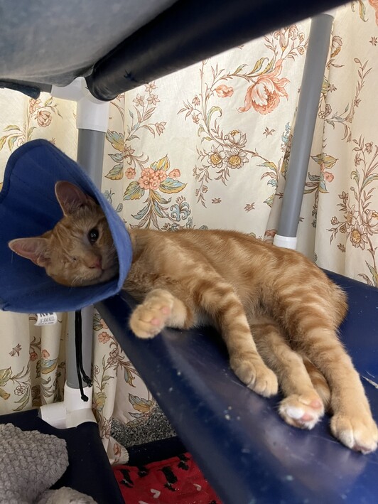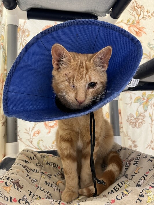 Pickles was transferred to the Ontario SPCA and Humane Society York Region Veterinary Clinic for surgical care. The eye unfortunately couldn’t be saved and Pickles underwent surgery to remove it, giving him the best chance at a pain-free future. During surgery, veterinarians discovered and removed two small quills embedded deep within the eye socket.
