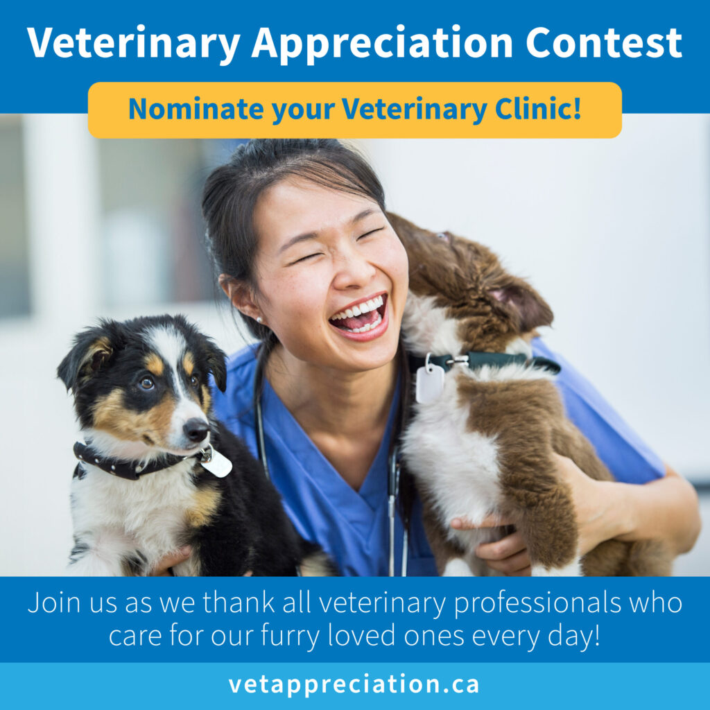 Visit vetappreciation.ca to nominate or vote for your pet’s veterinary clinic and join us in expressing gratitude to these dedicated professionals. Make sure to share with friends and family to increase your votes.
