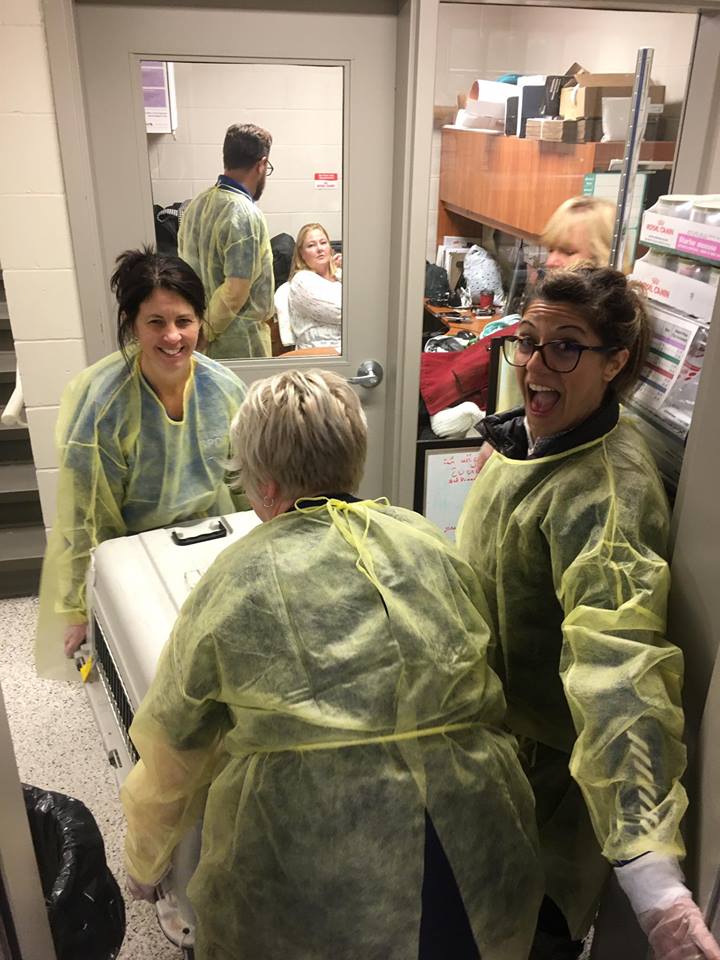 With many puppies being part of this transfer, our staff had a lot of fun getting them settled and comfortable for the night.
