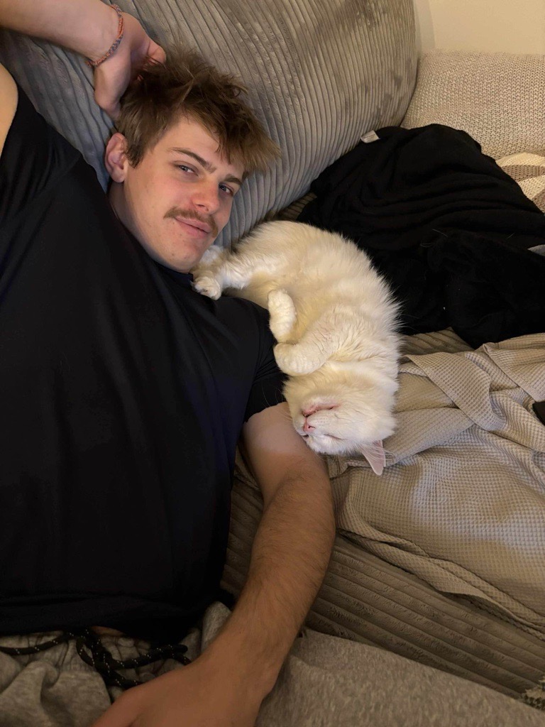 With his pink nose, almost naked rounded ears, and shining black eyes, our Registered Veterinary Technician April Sereda-Ashcroft immediately saw a resemblance between the long-haired feline and an opossum. She dubbed him “Opawsome,” and his recovery journey began.