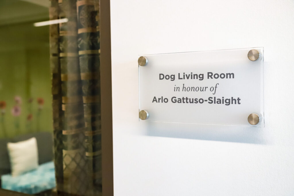 “The Arlo Gattuso-Slaight living room has been a key piece in helping to assess dogs in our care,” says Kassie Dickson, Animal Behaviour Coordinator, Provincial Dog Rehabilitation Centre. “It ensures they are given time outside of the hustle and bustle of the centre where they can kick back, relax, and get some much-needed decompression. This has helped greatly in decreasing stress and easing the transition into homes after adoption.”