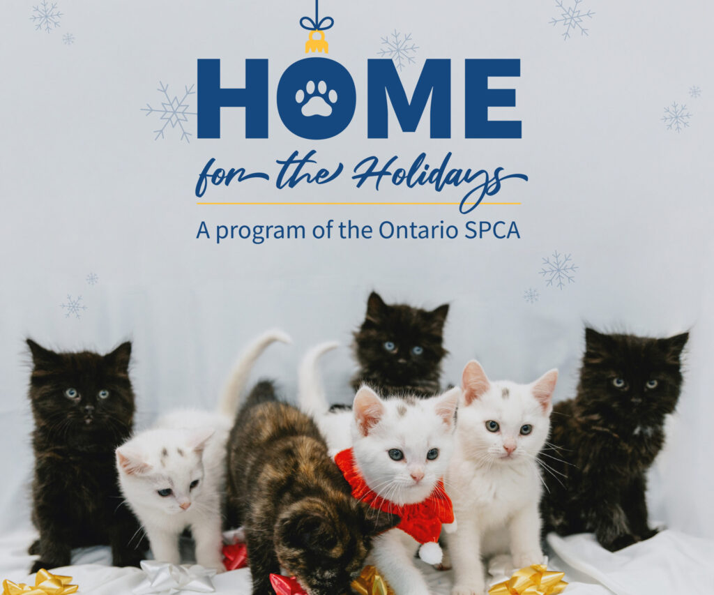 The holidays are a time of warmth, compassion, and togetherness. At the Ontario SPCA and Humane Society, it’s our favourite time of year to help animals find the loving families they’ve been dreaming of. That’s why we’re excited to launch our Home for the Holidays adoption campaign, running now until Dec. 24!