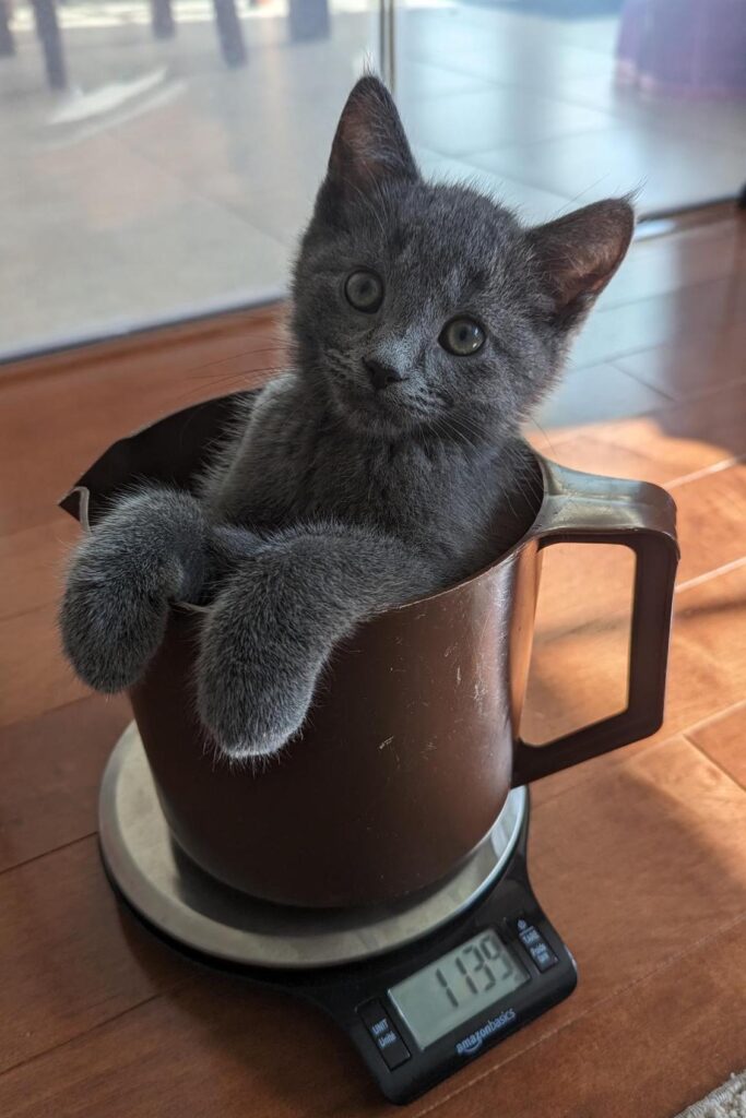 - Monitor weight: Regularly weigh your kitten and adjust their food intake as needed. Consult your veterinarian for guidance on determining and maintaining an ideal weight for your kitten. A great tool to leverage here are the kitten pediatric growth charts, that will help you ensure your kitten is growing healthily. Those charts are available online HERE and are a great monitoring tool that each kitten owner should implement I believe! Don’t hesitate to talk to your veterinarian about them so they can guide you here.