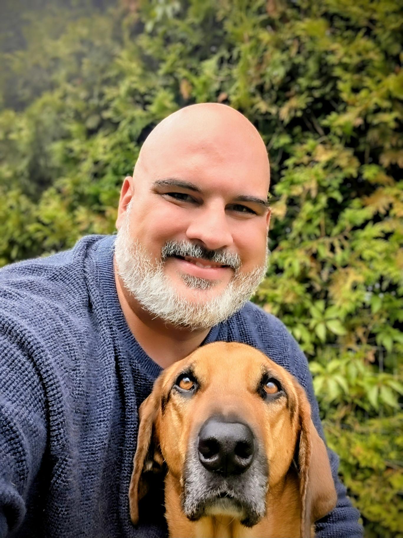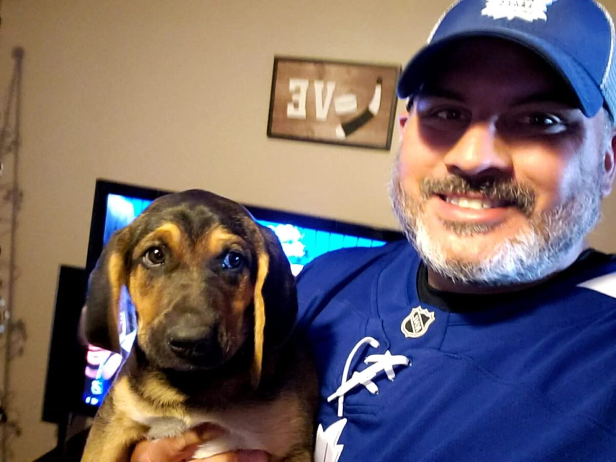 Today, Robert shares his home with his wife, daughter, and their Coonhound, Jax, who he affectionately calls “a big goofball.”