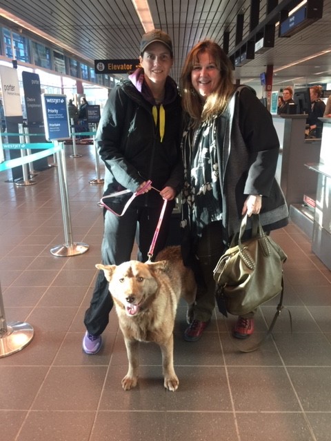 She had to come back to Toronto with me! But then what? I shared Hazel’s story with my friend Denise, who runs Mattie’s Place, a rescue and recovery centre for pets in need. She said she would have no problem getting Hazel into foster care and we could go from there. Hazel was brought to the airport by Erin, a Northern Reach volunteer. My good friend Nikki, past president and founder of the Northern Spay Neuter Program, drove me to the airport and then got to spend some time walking Hazel around to stretch her legs before the flight.