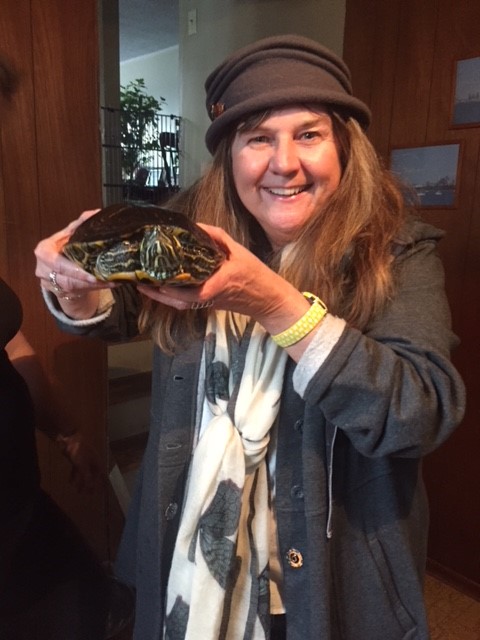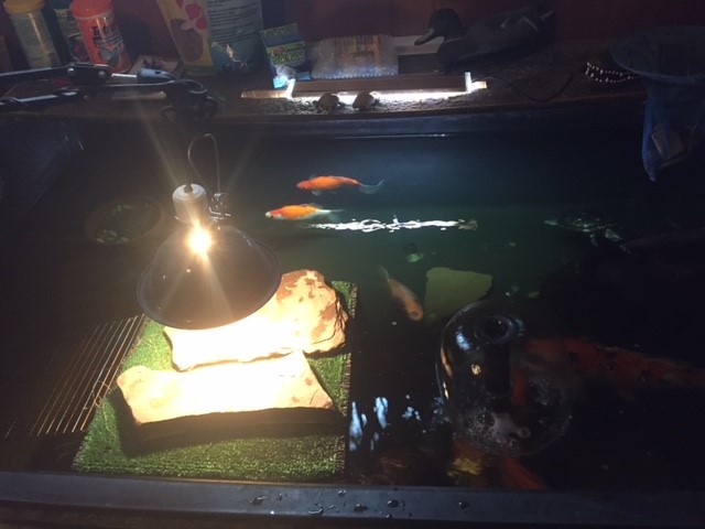 Hazel had puppies. She didn’t look pregnant when I saw her, but she had eight puppies! I had to see them! When I visited her, I also got a glimpse of the life of the incredibly kind person who took Hazel in. This house was full of love and rescued “pets.” First was this “pond” in the middle of their family room filled with rescued Koi from a restaurant aquarium where they had been living in six inches of filthy water. The pond also housed several turtles that were no longer wanted by their owners. Love birds that had been found outside and rescued from certain demise were also among the animal members of this family.