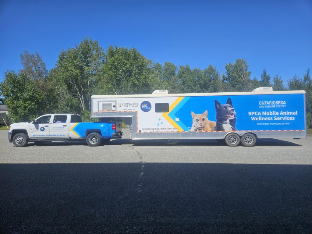 What is 38 feet long with two surgical tables and can perform enough spay/neuter procedures in just one day to prevent thousands of unplanned puppies and kittens who would potentially be without a home? It’s the Ontario SPCA Mobile Animal Wellness Services unit!