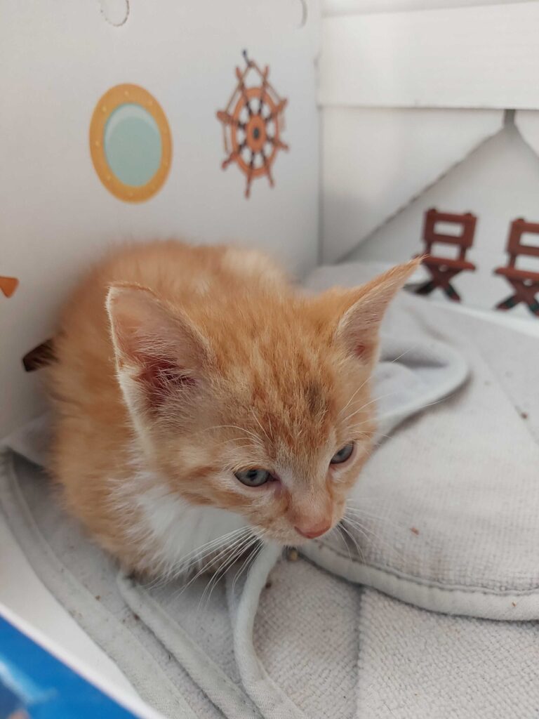 Place the cat cabin, (or other crate), in a small room where your new feline friend can safely stay for a few days as you introduce them to their new world. The room should have their food and water placed to one side, and a litter box on the opposite side. Open their carrier and quietly sit on the floor and wait.  If your feline is feeling frisky, they might come out right away, but often cats are a little timid and will venture out once they feel it’s safe to explore.