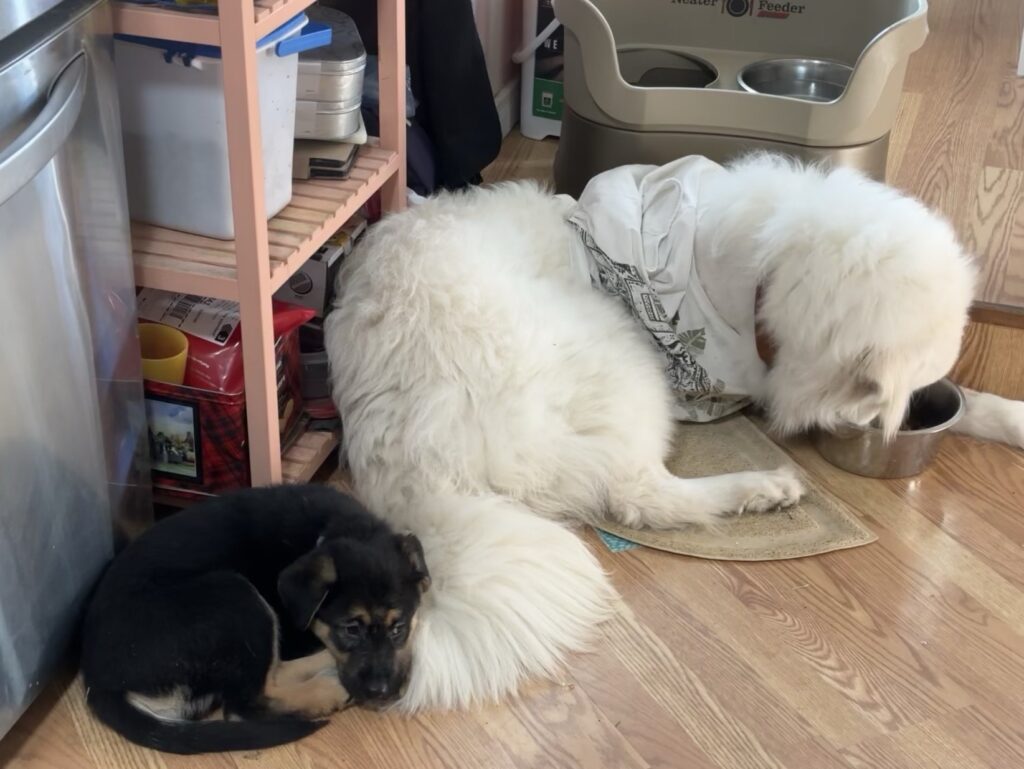 “He’s definitely a big brother,” Georgina says. “He’s very protective of the puppy.”