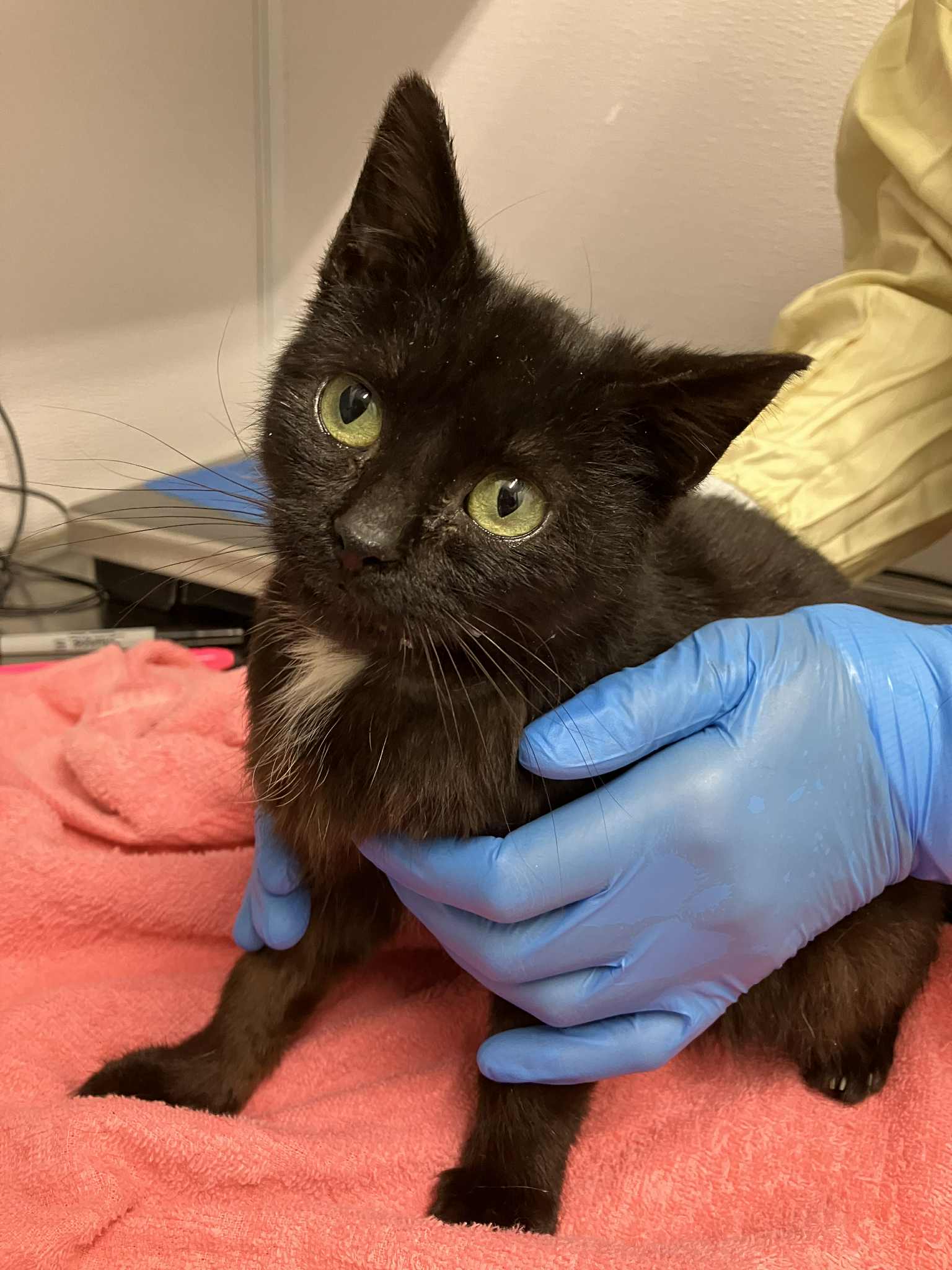 Tests confirmed that she was anemic and had raging coccidia, a microscopic parasite that infects the intestinal lining of animals, causing diarrhea and digestive upset. The team quickly sprang into action to make her comfortable and ensure she received the medical care she needed.
