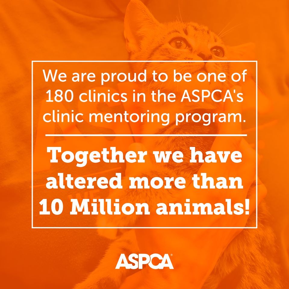 We are proud to be one of 180 clinics in the ASPCA’s clinic mentoring program. Together, we have altered more than 10 million animals!